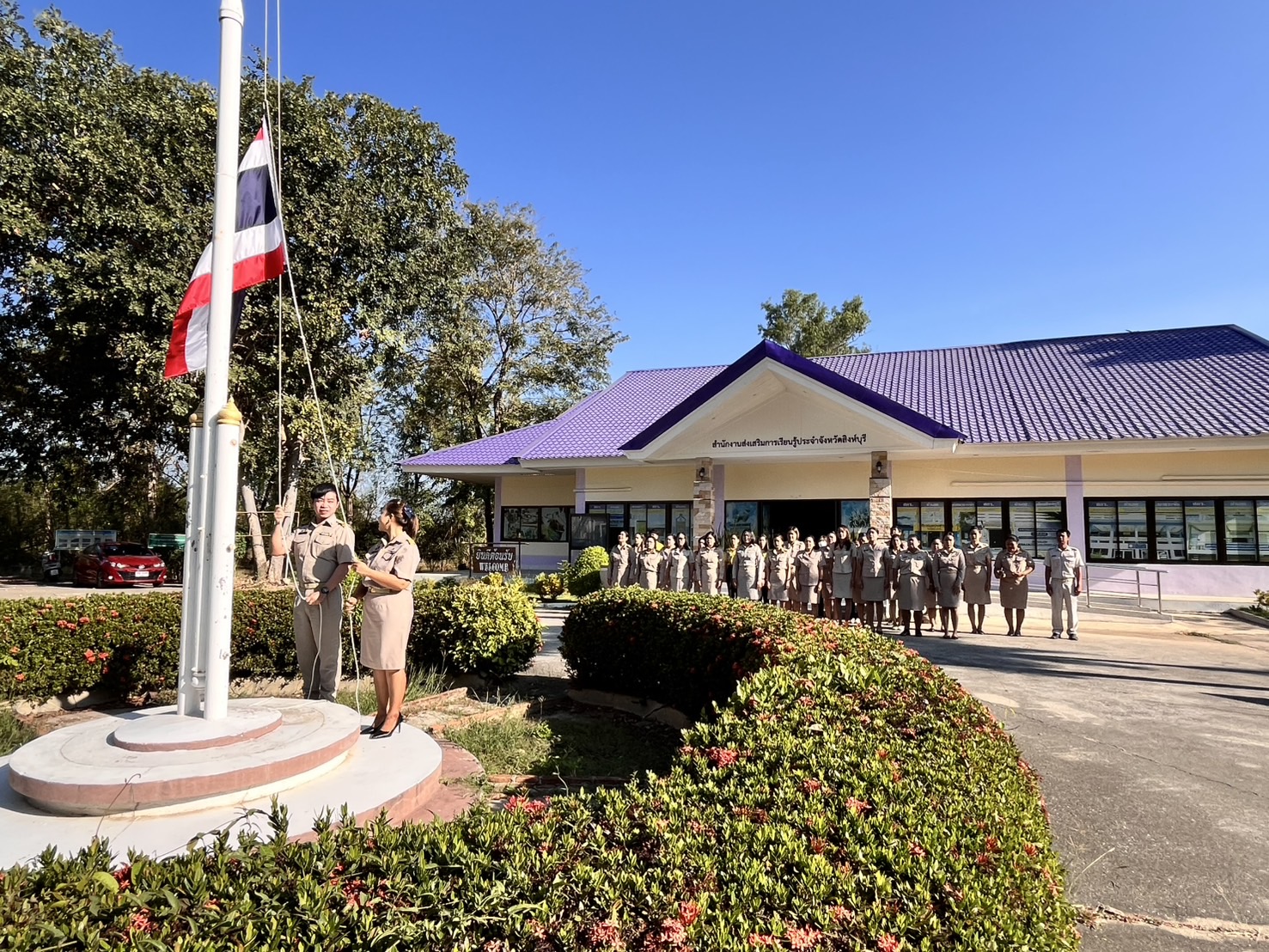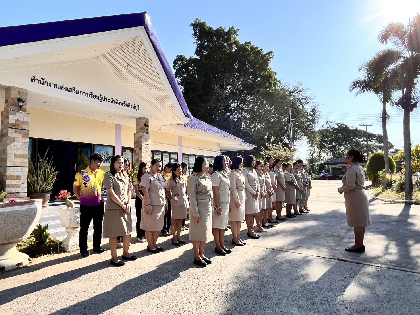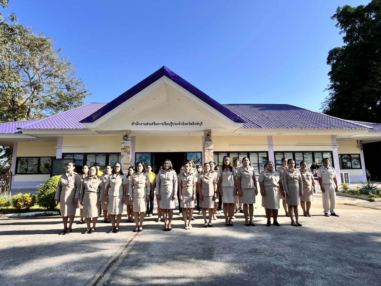 วันจันทร์ที่ 10 กุมภาพันธ์ 2568 เวลา 8.00 น. นางศิริพร ศรีธนายุสบดี ครู ชำนาญการพิเศษ รักษาการในตำแหน่ง ผู้อำนวยการสำนักงานส่งเสริมการเรียนรู้ประจำจังหวัดสิงห์บุรี พร้อมด้วยคณะผู้บริหารสถานศึกษา และบุคลากรในสังกัดฯ ร่วมจัดกิจกรรมเคารพธงชาติ และสวดมนต์ไหว้พระ เพื่อแสดงความจงรักภักดี ปกป้องและเทิดทูนต่อ "สถาบันหลัก" (ชาติ ศาสนา และพระมหากษัตริย์ )